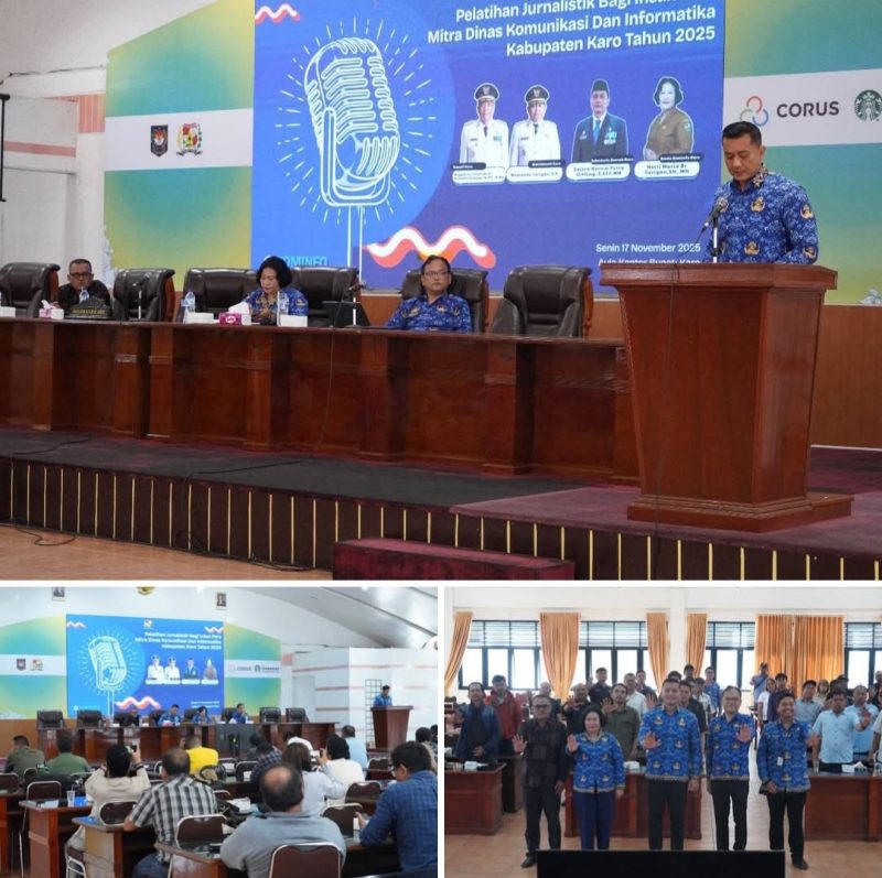 Karo – Wartarealitas – Bertujuan untuk meningkatkan kapasitas, kompetensi dan keterampilan dalam menyebarkan informasi secara akurat, etis, profesional dan bertanggung jawab. Puluhan insan pers mitra kerja Dinas Komunikasi dan Informatika Kabupaten Karo ikuti pelatihan jurnalistik. Yang di selenggarakan di Gedung Aula Lt lll Kantor Bupati Karo. Senin (17/11/2025) mulai pukul 09 : 00 Wib.